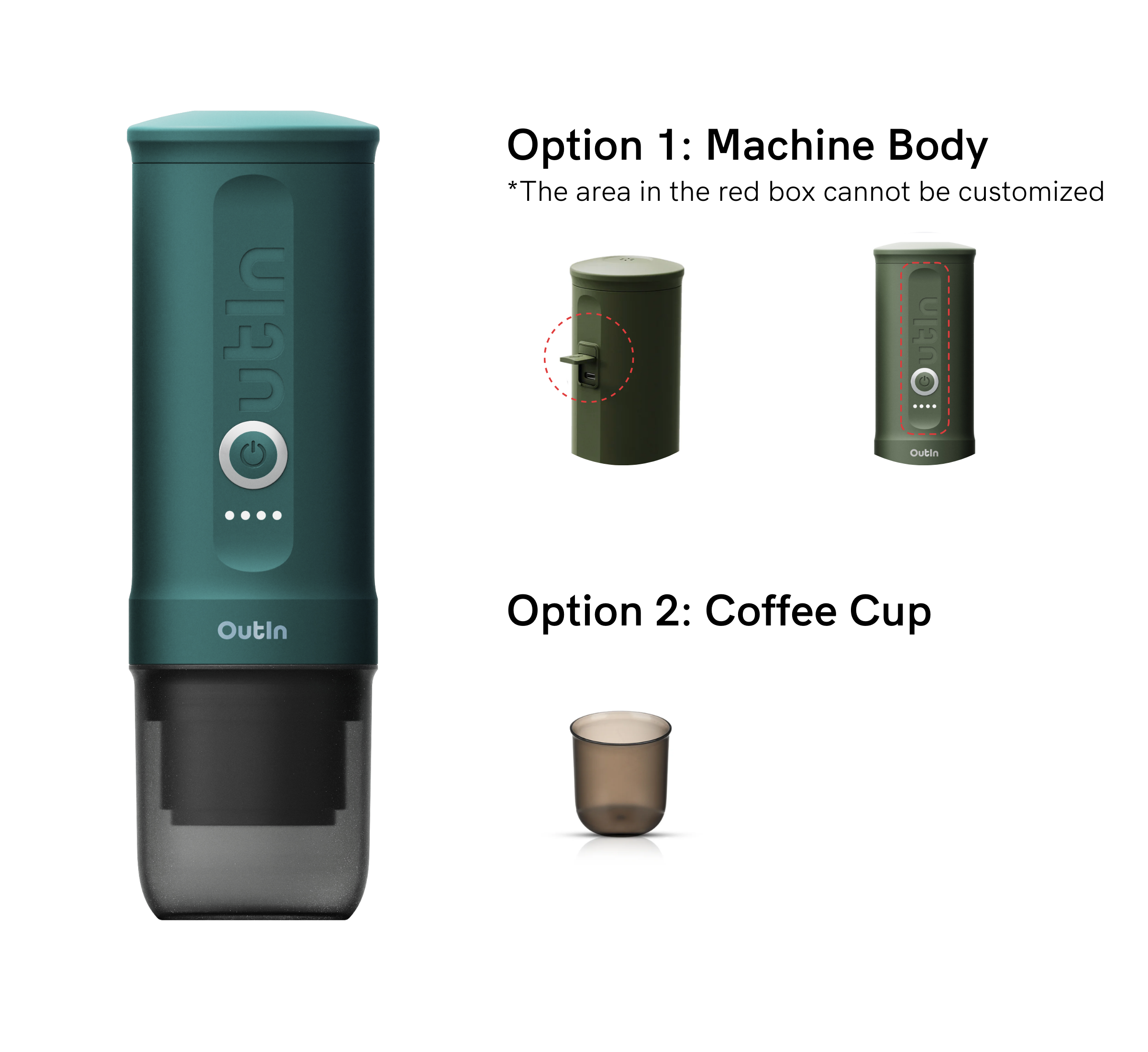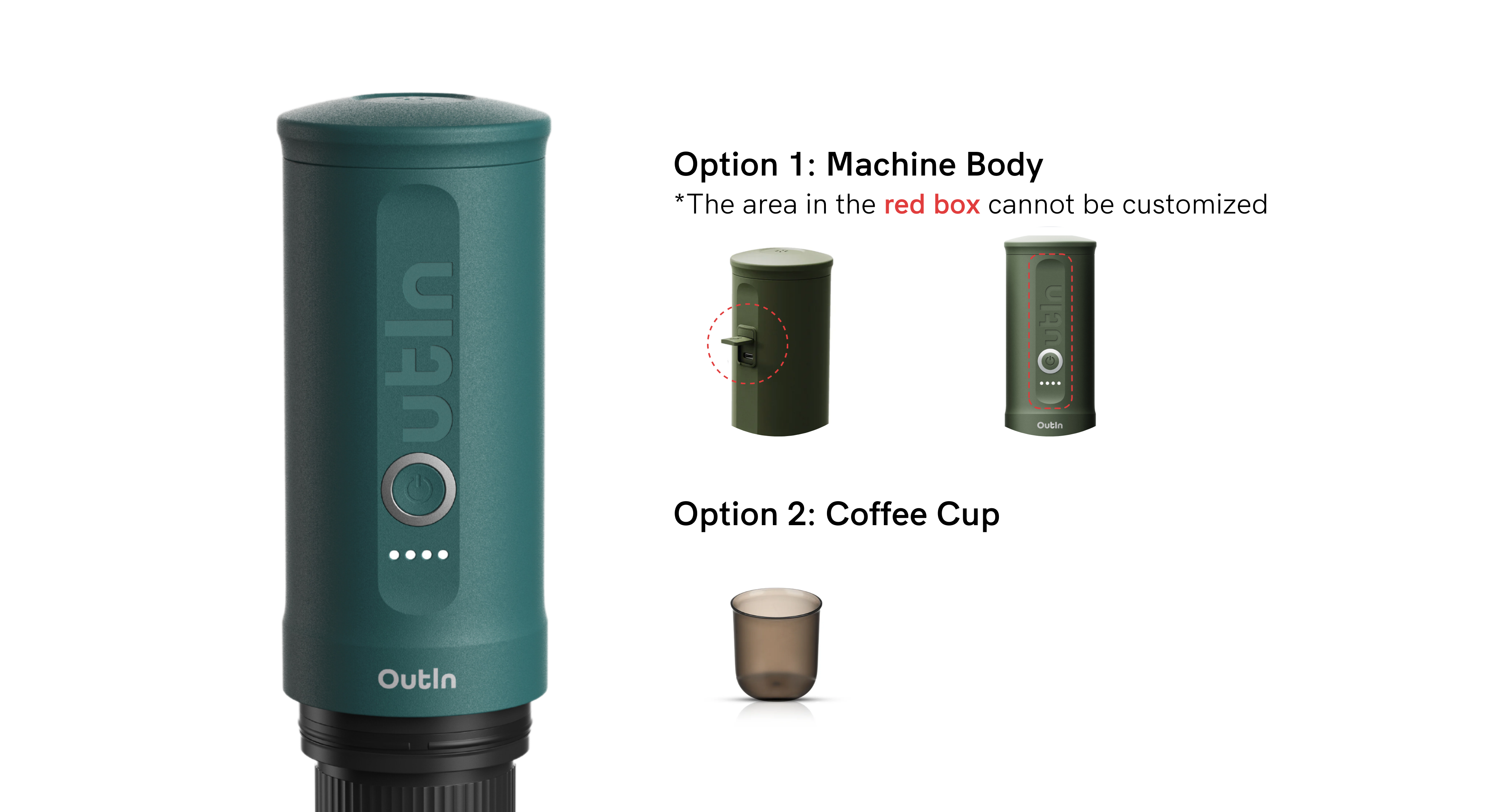 Elevate your brand with custom logos and designs on OutIn Nano Portable Electric Espresso Machine.