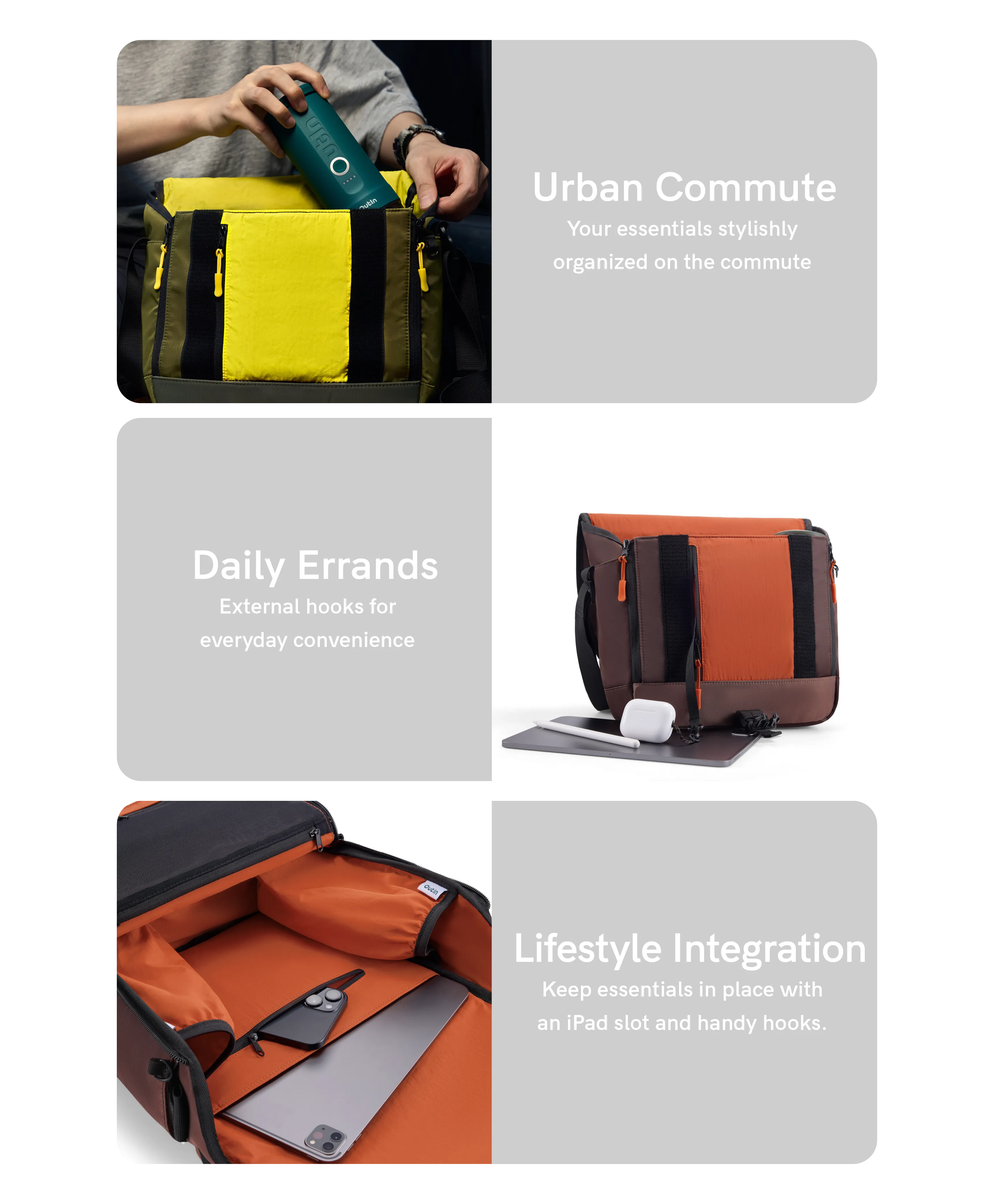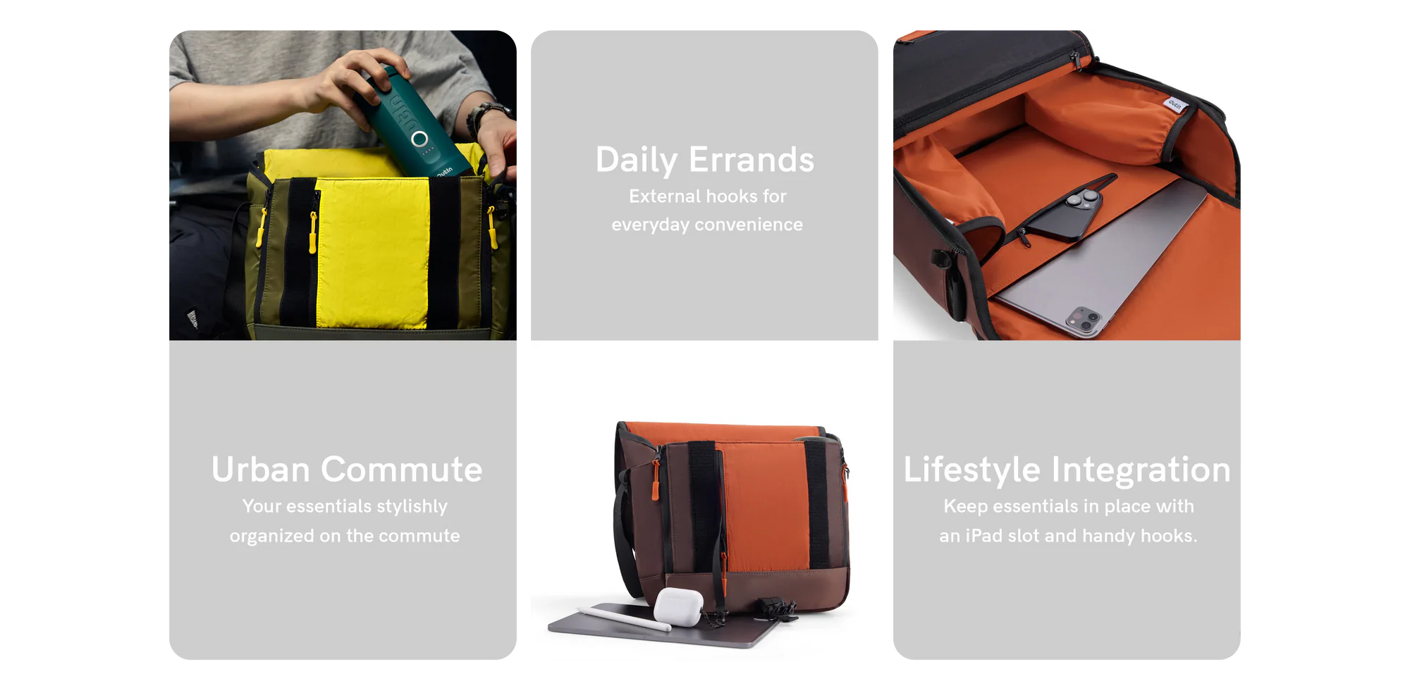 - Intégration au style de vie : Comprend un compartiment pour iPad 11", un crochet pour clés dans la poche avant, ainsi que plusieurs crochets externes pour organiser facilement vos essentiels et suspendre vos accessoires en toute liberté.