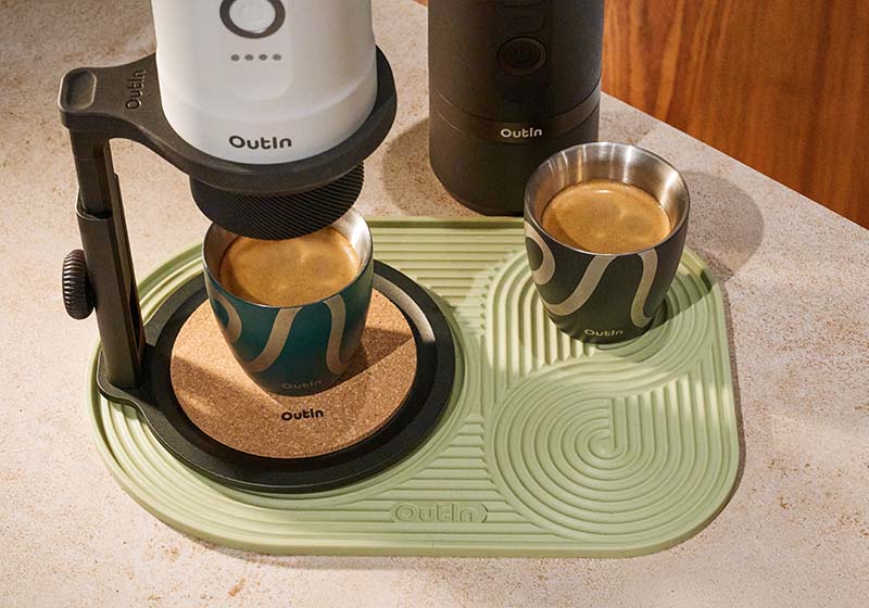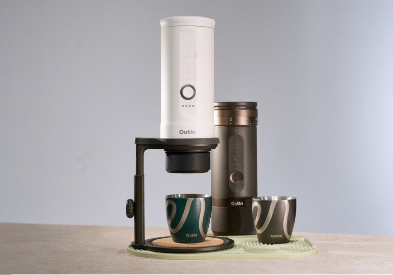 Imaginé pour s'accorder à la perfection avec votre OutIn Nano, votre moulin Fino et le Support Café. Avec ses coloris assortis (Teal et Gris) et sa calibration précise, c'est l'élément qu'il manquait pour créer la station café de vos rêves — à la maison comme en voyage.