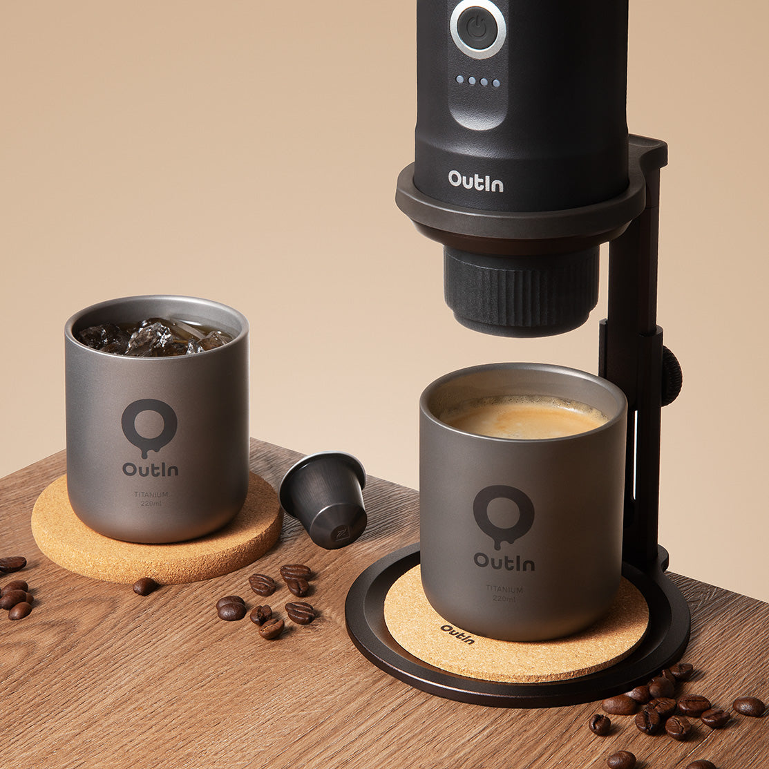 Passez au niveau supérieur avec le trio parfait : la Tasse à Café en Titane, l'élégante OutIn Nano Gris Sidéral et le Support Universel. Cet ensemble vous permet d'extraire votre espresso directement dans la tasse en titane pur, préservant ainsi les arômes authentiques et la chaleur de votre café, le tout dans un format ultra-léger et nomade.